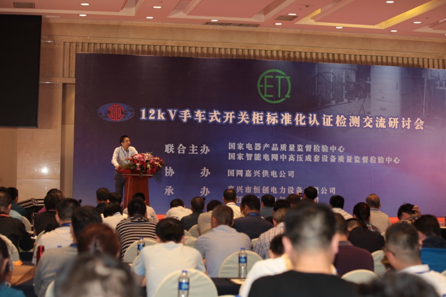 2018年5月5日,由国家电器产品质量监督检验中心和国家智能电网中高压成套设备质量监督检验中心联合主办、国网嘉兴供电公司协办、嘉兴市恒创电力设备有限公司和浙江聚弘凯电气有限公司承办的12kV手车式开关柜标准化认证检测交流研讨会在浙江省嘉兴富悦大酒店顺利召开。